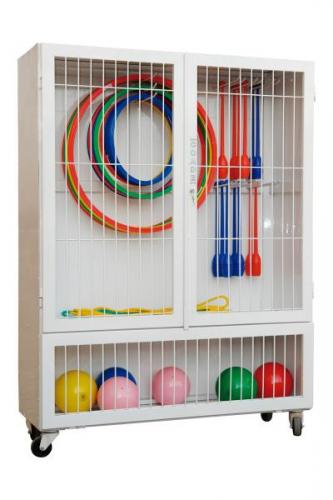 Armario para material de gimnasia rítmica, trasladable mediante ruedas giratorias. Medidas 162 x 120 x 40 cm.