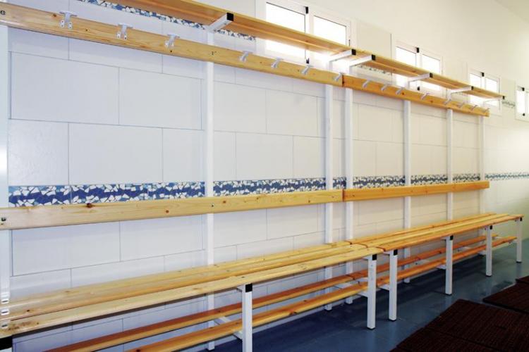 Bancos con perchas y estantes